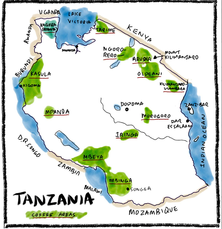 Processing: Almost all coffee in Tanzania is wet-processed (washed).