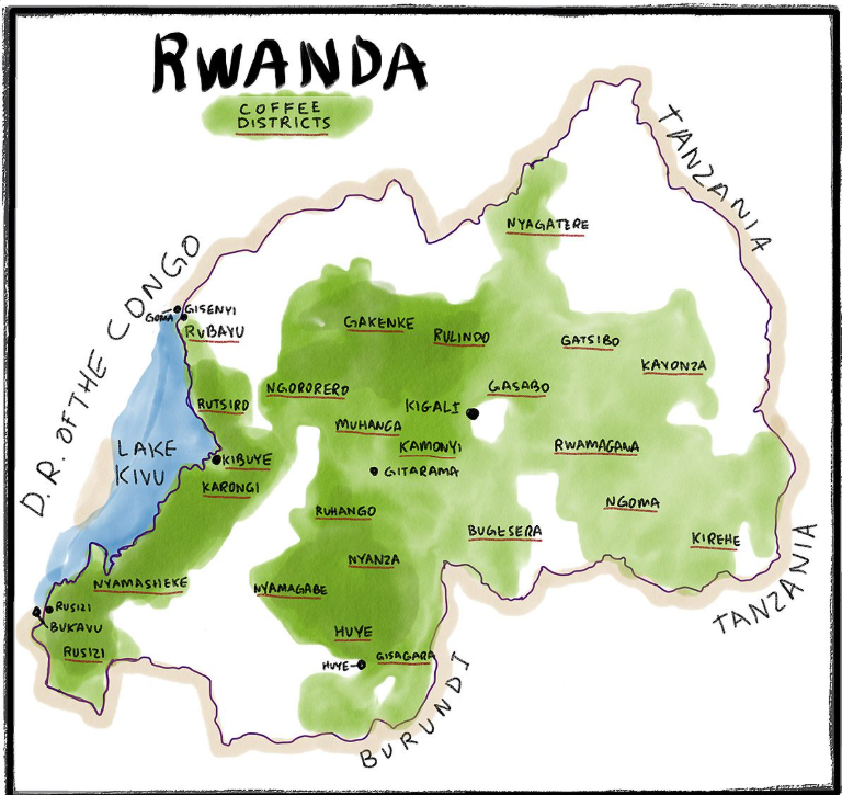 Growing Regions: Key regions include Virunga, Kivu, Kizi Rift, Akagera, and Muhazi.