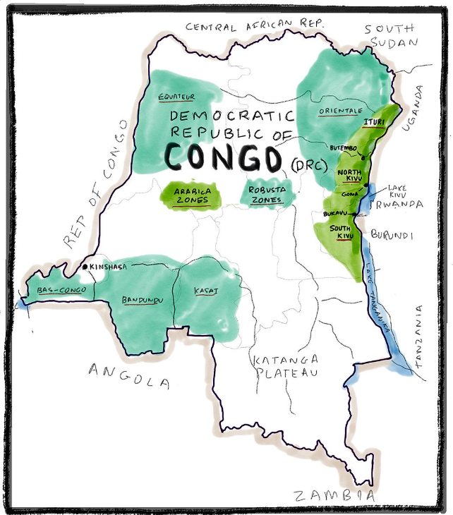 Growing Regions: Production is centered in North Kivu, South Kivu, and Ituri for Arabica, while Robusta is grown more widely across the country.